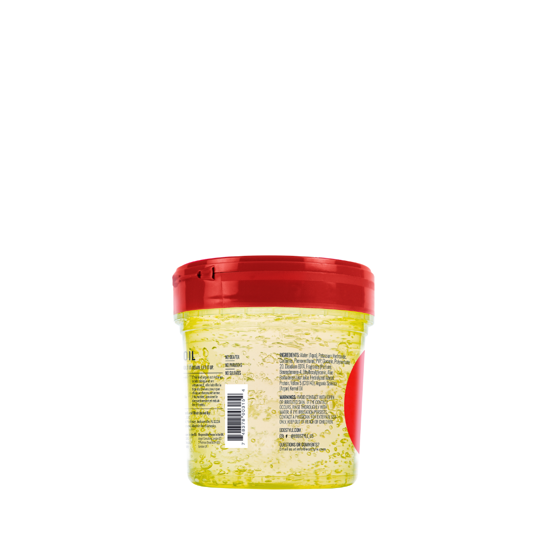 Gel de peinado con aceite de argán marroquí, ideal para una fijación duradera, hidratación profunda y brillo. Perfecto para rizos definidos, control de frizz y un acabado suave y natural.